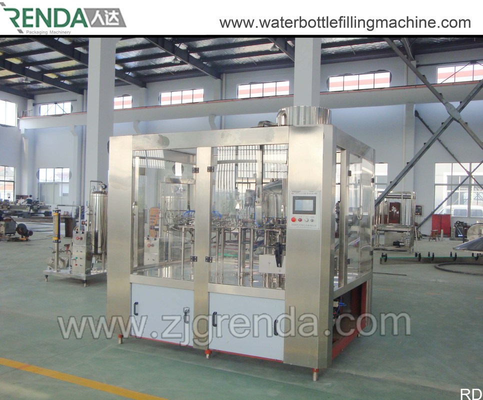 Rangkaian mesin ini mengintegrasikan pencucian, pengisian, dan pembatasan ke dalam satu unit, dapat digunakan dalam produksi minuman non-soda dari air murni, jus buah, anggur buah, dan air mineral.